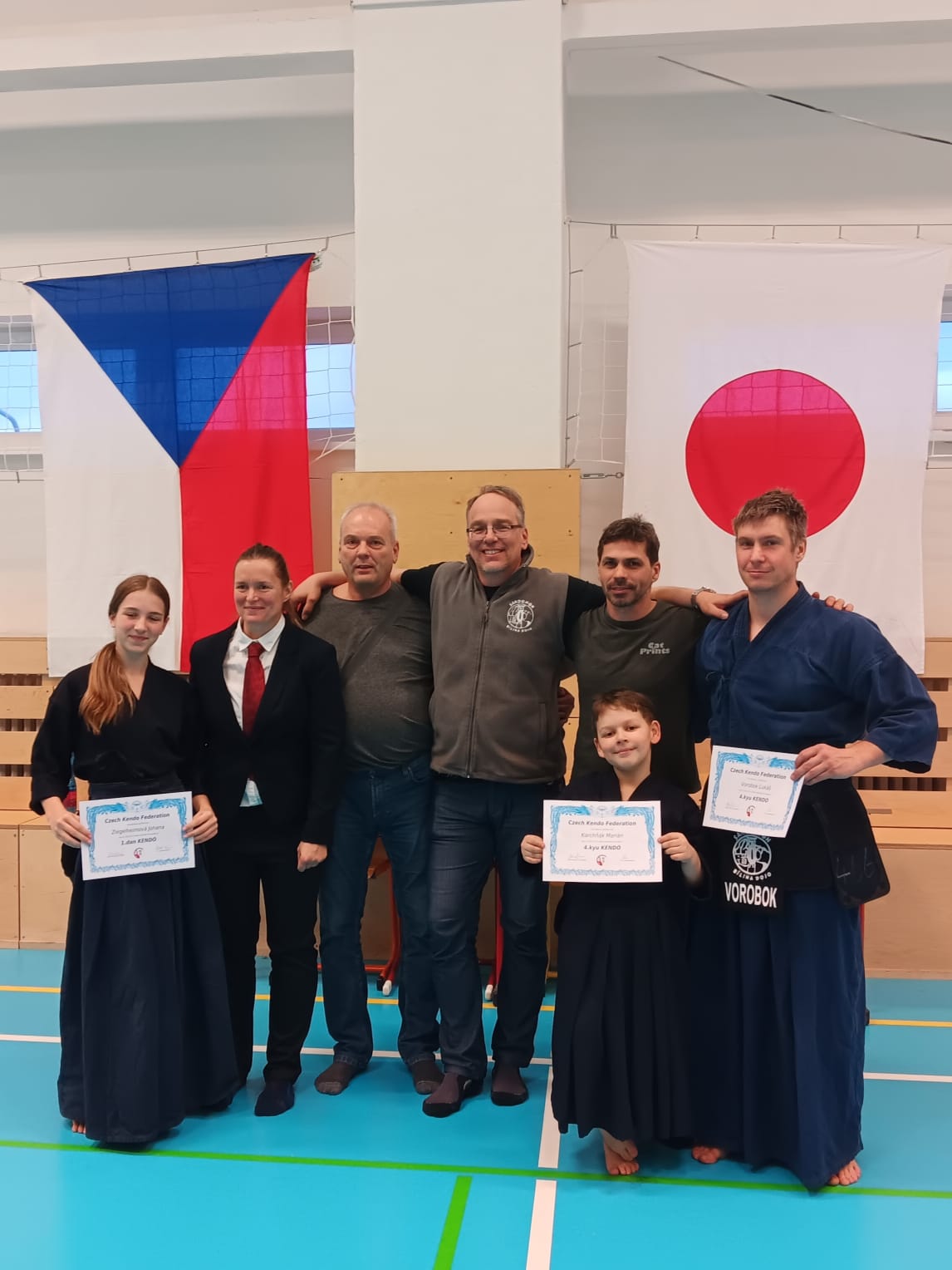 22. 3. 2025 se v Praze konal seminář s italským sensejem Liviem Lancinim, držitelem 7. danu. Tento seminář je součástí tradičních pražských závodů Techika cup. Přijeli i jiní italští učilé se sedmým danem jako například Yunsook Ma, Fabricio Mandia, Bernardo Ciapollaro a naši manželé Ziegelheimovi, aby učili kendó a předávali své zkušenosti. Kendisté z oddílu SanDoMon Bílina se semináře účastnili, aby se přiučili novým kouskům v tomto japonském šermířském umění. Po semináři byly zkoušky, kde se Johaně Ziegelheimové podařilo získat 1. Dan a Mariánovi Karchňákovi s Lukášem Vorobokem 4.kyu. Gratulujeme! Účast bílinských kendistů na semináři a zkoušky proběhly za finanční podpory města Bílina.